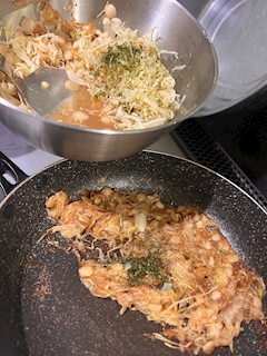 今日のお昼は1人でズボラもんじゃ焼き☺️キッチンでホットプレート出さずにフライパン🍳でキッチンで食べるー♡美味しかったー✨今夜もよろしくお願いしますように🥰月島とか築地?本場のもんじゃ焼き食べに行ってみたいな♪