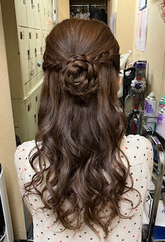 おはようございます 出勤しました〜 今日の髪型はお花ハーフアップにしてみました🌼