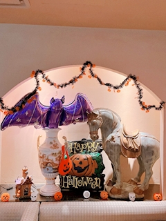 見て〜! 装飾がレベルアップしてたー! かわいい🎃♡ わたしはずっと前から、お馬さんが好き メルヘンで好き♡ みんなー、ハロイベだよー! 来てねー!🎃 みんな何着るんだろう🥰💭