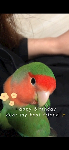 今日は一緒に住んでる小鳥の誕生日!🎉いつも癒してくれてありがとうの気持ちでちょっと高めのおやつを買ってあげました💐 私の胸あたりにしがみついてるのですが本当に愛くるしい…