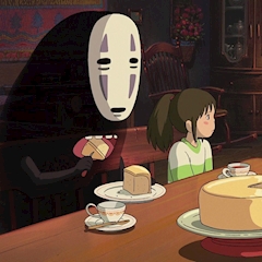 千と千尋の神隠しで、あれだけ暴食してたカオナシが、銭婆の家でお行儀良く座ってケーキ食べてるの好き🍰 ちゃんとフォークも使ってお皿も持って食べてる。 湯屋の欲のせいでおかしくなってただけで、ほんとはとても良い子なんだよなぁ #千と千尋の神隠し #金曜ロードショー