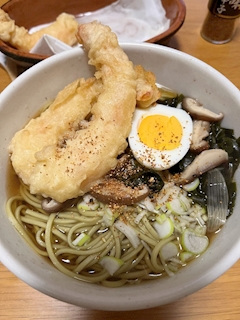 実家で年越しそばを食べました🥢 茶蕎麦でした🍵 美味しかったです♪ えび天ものってて嬉しかったです😊 長寿や金運、家運、厄払いなど、縁起の良いものですね 皆さんは食べましたか?