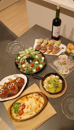 クリスマスパーティーをした💫 サラダ🥗とグラタン🫕とハンバーグ🍖は私が作ったー! ハンバーグはトナカイさん、サラダはクリスマスのリースに見えるようにがんばりました! 楽しかったです🎄💫💞