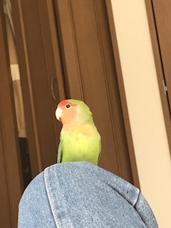 今日はオフだから目覚ましかけずにいっぱい寝溜めしようと思ってたのにもう目が覚めちゃった☀️✨ 私の膝の上でくつろぐ相棒🦜